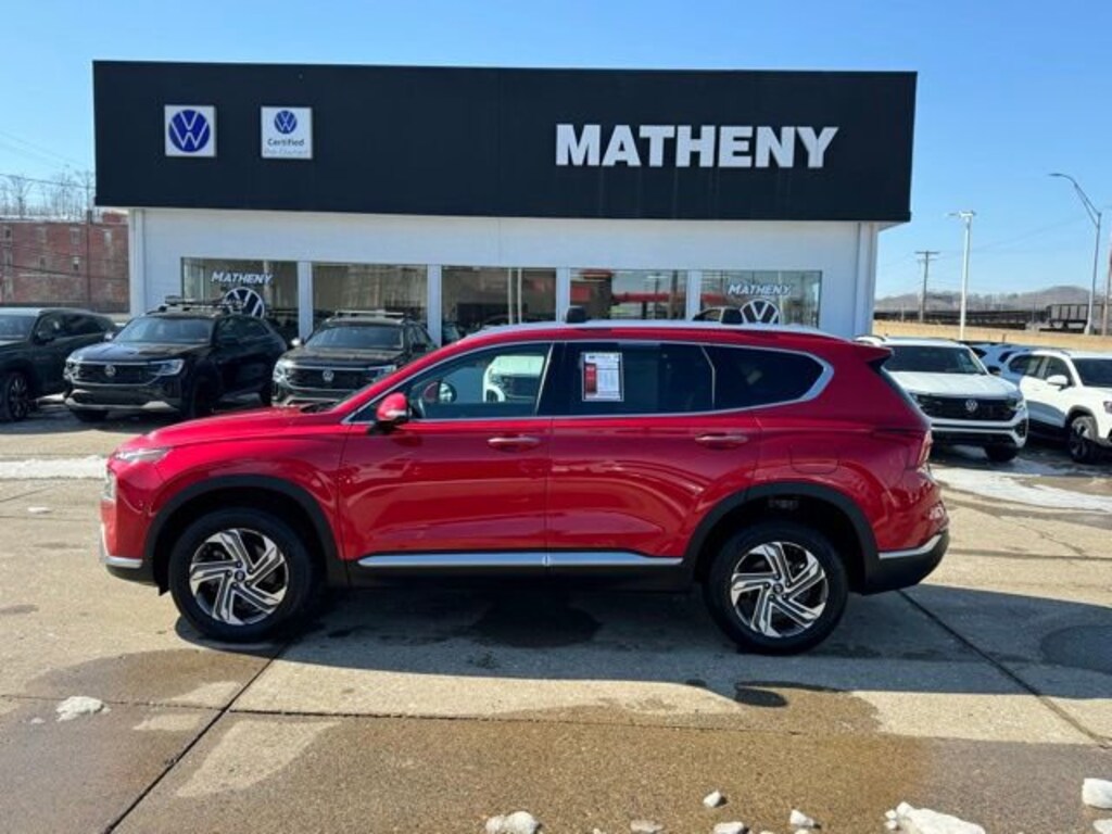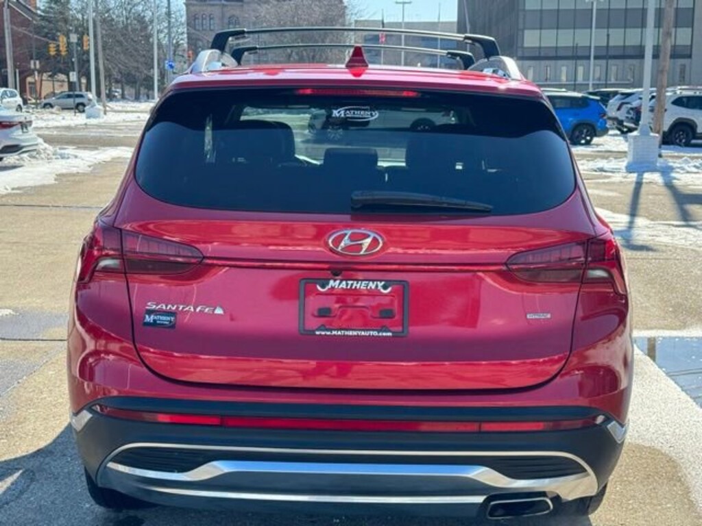 The Matheny Family has been in business for over 100 years, buy with confidence!!!!Odometer is 4602 miles below market average!12.3 LCD Multi-Information Display, 18 x 7.5J Alloy Wheels, 4-Wheel Disc Brakes, 6 Speakers, 8-Way Power Passenger Seat, ABS brakes, Acoustic-Laminated Front Side Windows, Air Conditioning, Alloy wheels, AM/FM radio: SiriusXM, Apple CarPlay & Android Auto, Auto High-beam Headlights, Auto-Dimming Rear-View Mirror, Automatic temperature control, Axle Ratio: 4.081, Blind-Spot View Monitor, Brake assist, Bumpers: body-color, Cargo Net, Carpeted Floor Mats, Chrome Front & Rear Bumper Accents, Chrome Interior Accents, Delay-off headlights, Driver door bin, Driver vanity mirror, Dual front impact airbags, Dual front side impact airbags, Electronic Stability Control, Emergency communication system, Exterior Parking Camera Rear, First Aid Kit, Four wheel independent suspension, Front anti-roll bar, Front Bucket Seats, Front Center Armrest, Front dual zone A/C, Front reading lights, Fully automatic headlights, H-Tex Leatherette Seat Trim, harman/kardon® Audio System, Heated door mirrors, Heated Front Bucket Seats, Heated front seats, Illuminated entry, Leather steering wheel, LED Interior Lights, LED Taillights, Low tire pressure warning, Manual Rear Side Sunshades, Navigation System, Occupant sensing airbag, Option Group 02, Outside temperature display, Overhead airbag, Overhead console, Panic alarm, Panoramic Sunroof, Passenger door bin, Passenger vanity mirror, Power door mirrors, Power driver seat, Power Liftgate, Power Release 2nd Row Seats, Power steering, Power windows, Premium Package, Radio: AM/FM Display Audio, Rear anti-roll bar, Rear seat center armrest, Rear window defroster, Rear window wiper, Remote keyless entry, Roof Rack Cross Bars (DISC), Security system, Silver Front Grille, Speed control, Speed-sensing steering, Split folding rear seat, Spoiler, Stain-Resistant Cloth Seat Trim, Steering wheel mounted audio controls, Surround View Monitor, Tachometer, Telescoping steering wheel, Tilt steering wheel, Traction control, Trip computer, Turn signal indicator mirrors, Variably intermittent wipers.2023 Hyundai Santa Fe SEL Calypso Red 4D Sport Utility AWD 8-Speed Automatic with SHIFTRONIC 2.5L I4